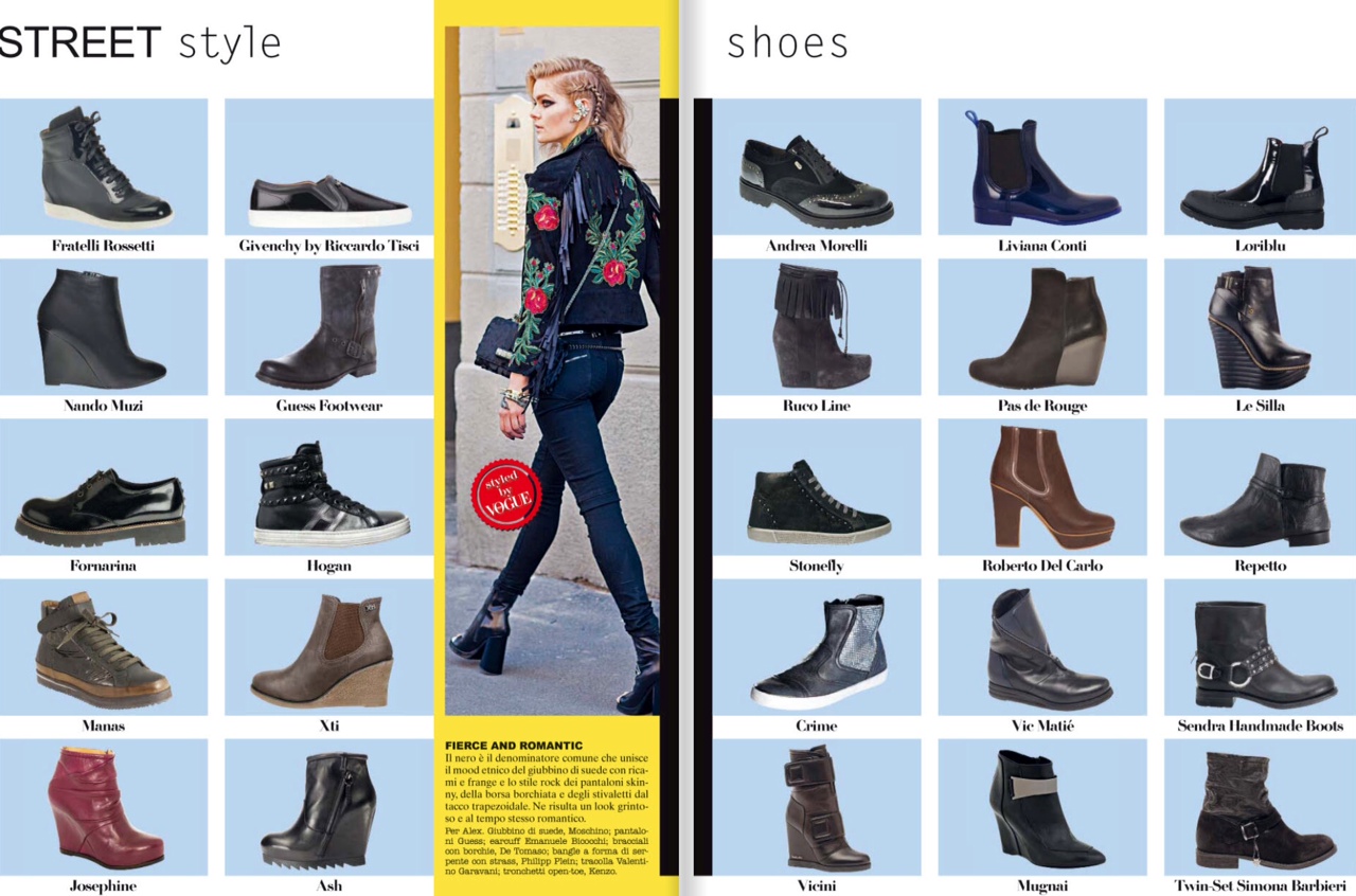 Shoes in particular are coming to the fore. Be it boots, pumps, flats or sneakers, they all have a place in the current realms of fashion. Shown above is an editorial that highlights the current trend for variety. There is, however, one thing all of these shoes have in common. The material.