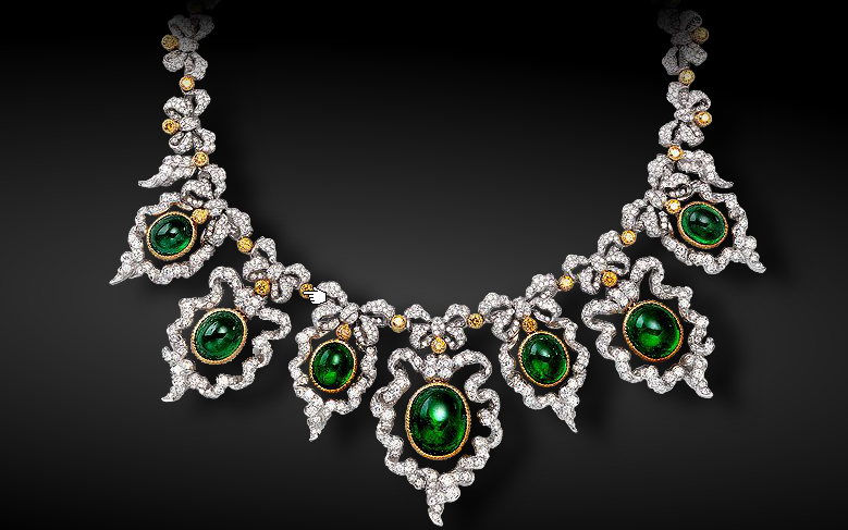 Featured above is an emerald encrusted diamond necklace. Similar to a recent article we posted on the-accessories-guild, I have a little complaint about the website. The design is similar to one you’d expect from a coffee table flip book. It has some amazing pieces of jewellery in it, but again, there is no information section. I love a good picture book, but I appreciate hearing about the craft that goes into producing these pieces of jewellery.