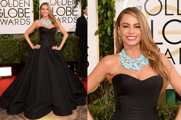 The most noticeable of all jewellery pieces from this year’s Golden Globes was the Lorraine Schwartz necklace worn by Modern Family star Sofia Vergara. At the Emmys, Vergara stepped out without a necklace, but she has hit back with a vengeance with this mammoth piece. Meanwhile, Cate Blanchet looked like a painting in her Armani Prive dress.